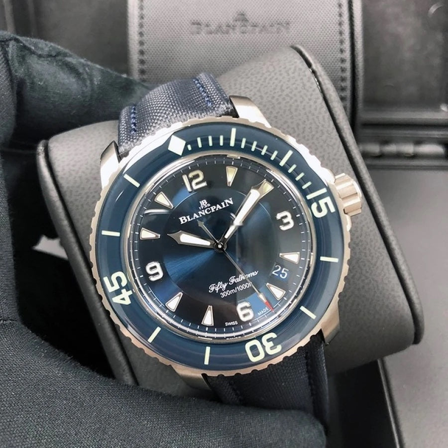 Blancpain Fifty Fathoms Blue Dial Titanium 45mm. Comes complete with all boxes, booklets, papers and...