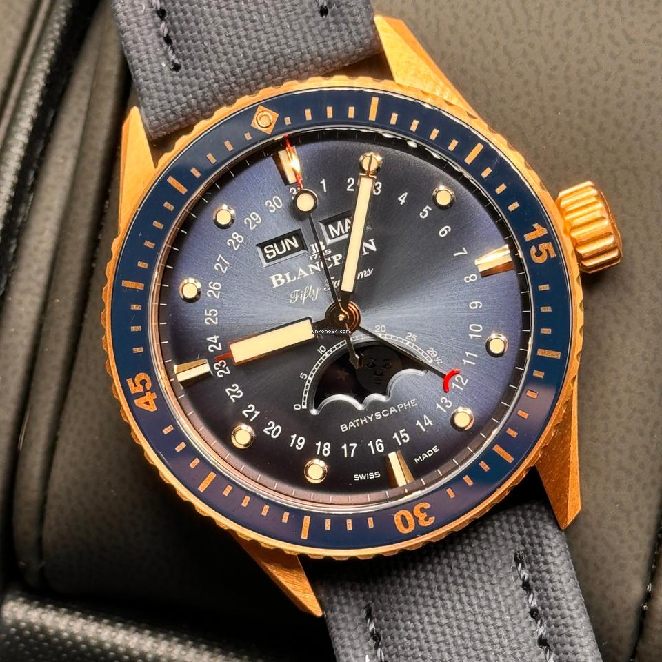Blancpain Fifty Fathoms Bathyscaphe NEW 2024 Fifty Fathoms Bathyscaphe Quantième Complet Phases 5054 3640 O52B