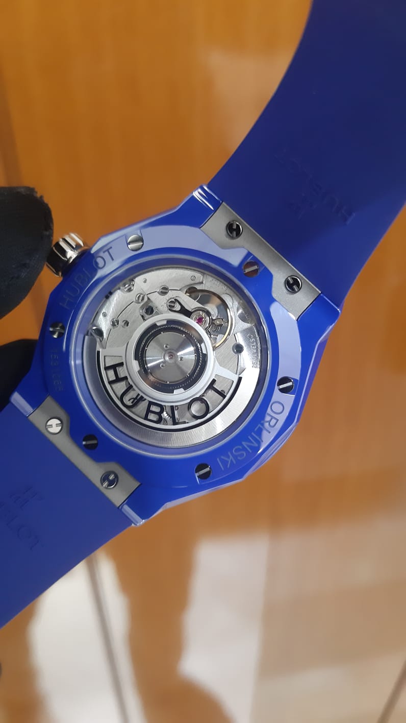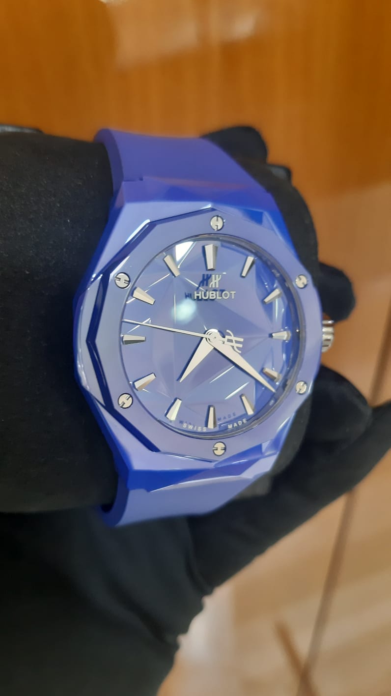 UNWORN Hublot 40mm with blue ceramic case. Orlinski special edition *Boutique Only*.
