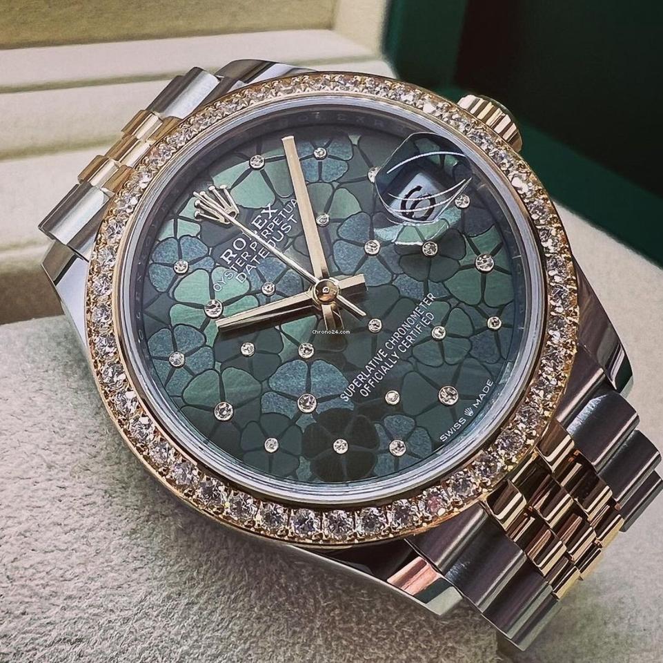 Rolex Datejust 31 NEW 2023 Datejust 31 GREN FLORAL FACTORY DIAMOND BEZEL 278383RBR