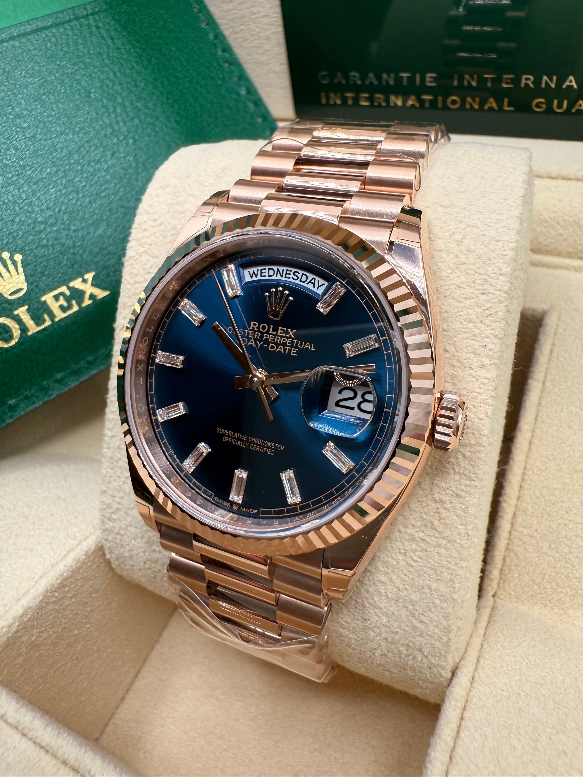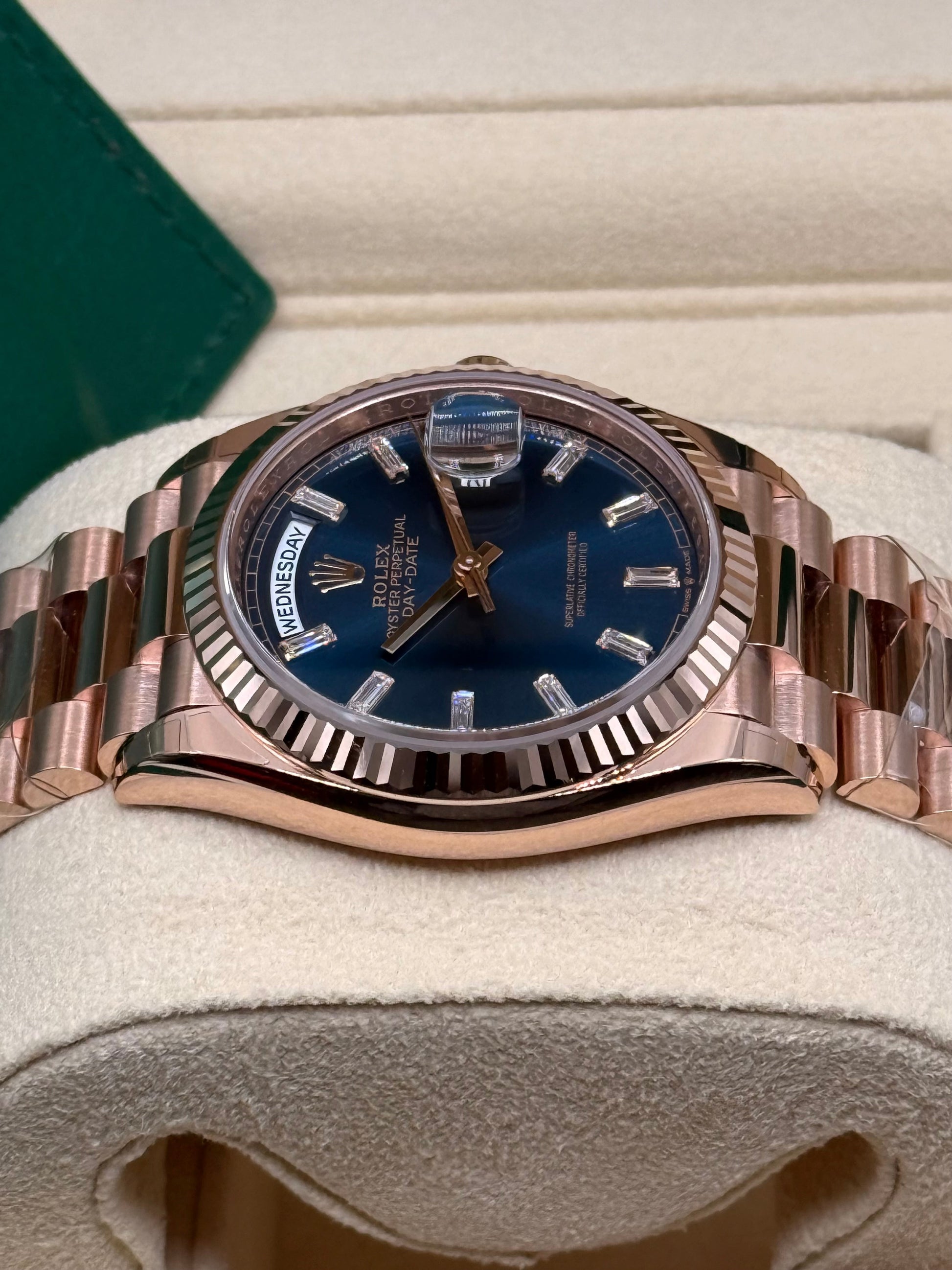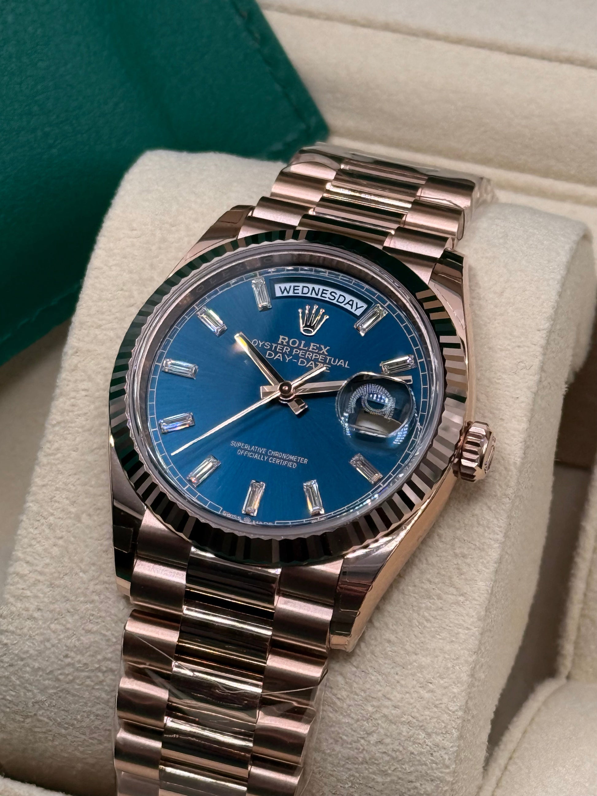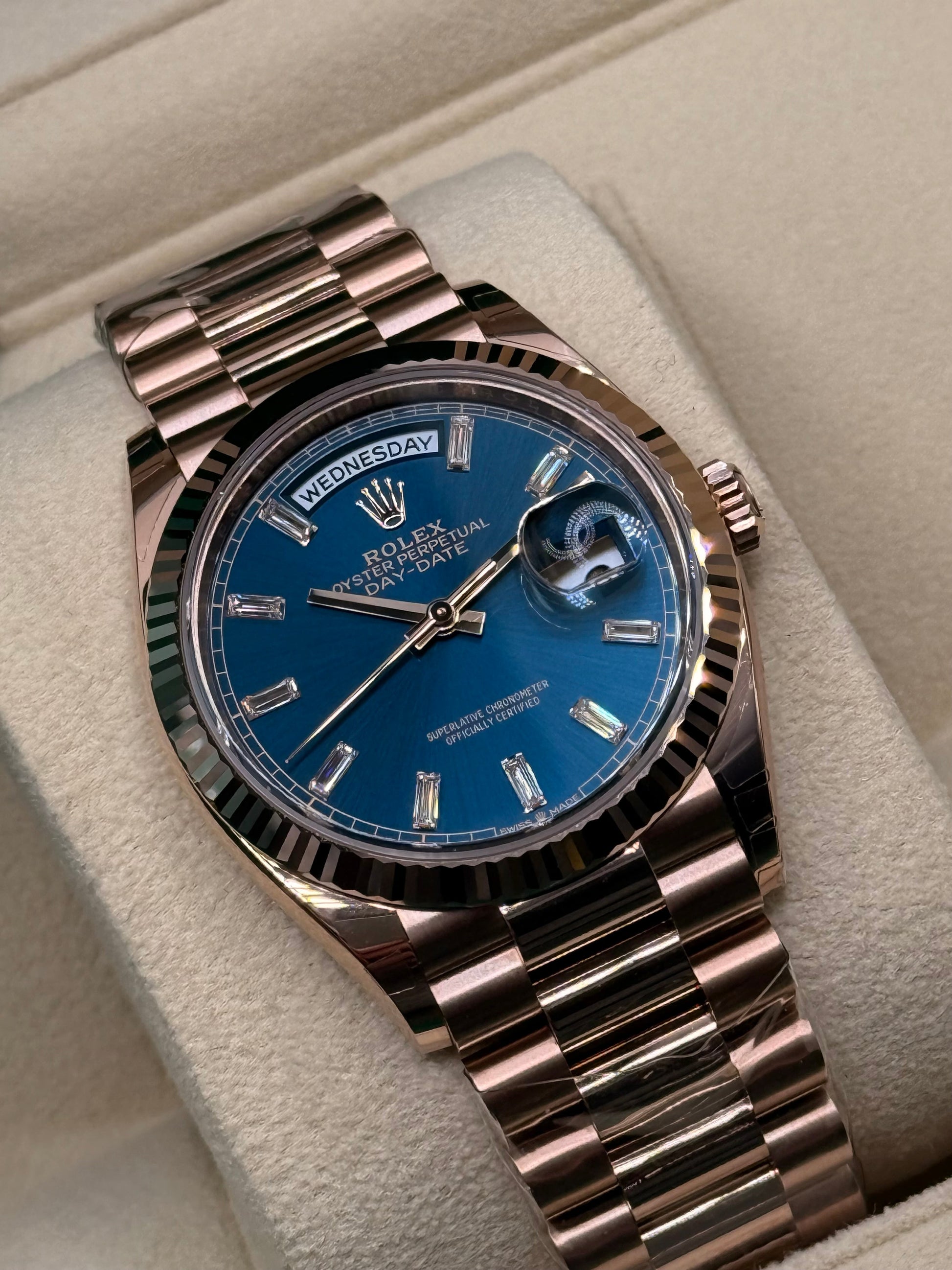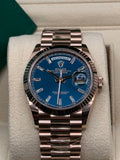 Rolex Day-Date 36 36mm Blue-Green Diamond-Set Dial Fluted Bezel President Bracelet - 128235 | 2024 Model