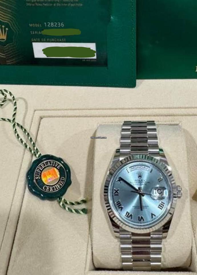 Rolex Day-Date 36 NEW 2024 Day Date 36mm ICE BLUE ROMAN Platinum Fluted 128236