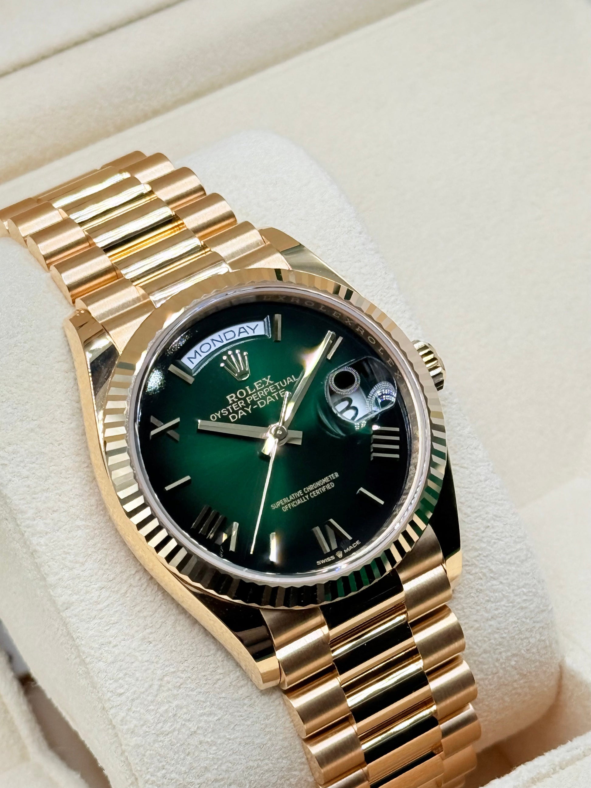 Rolex Day-Date 36 NEW RELEASE 2024 Day-Date 36 GREEN ROMAN OMBRE 128238