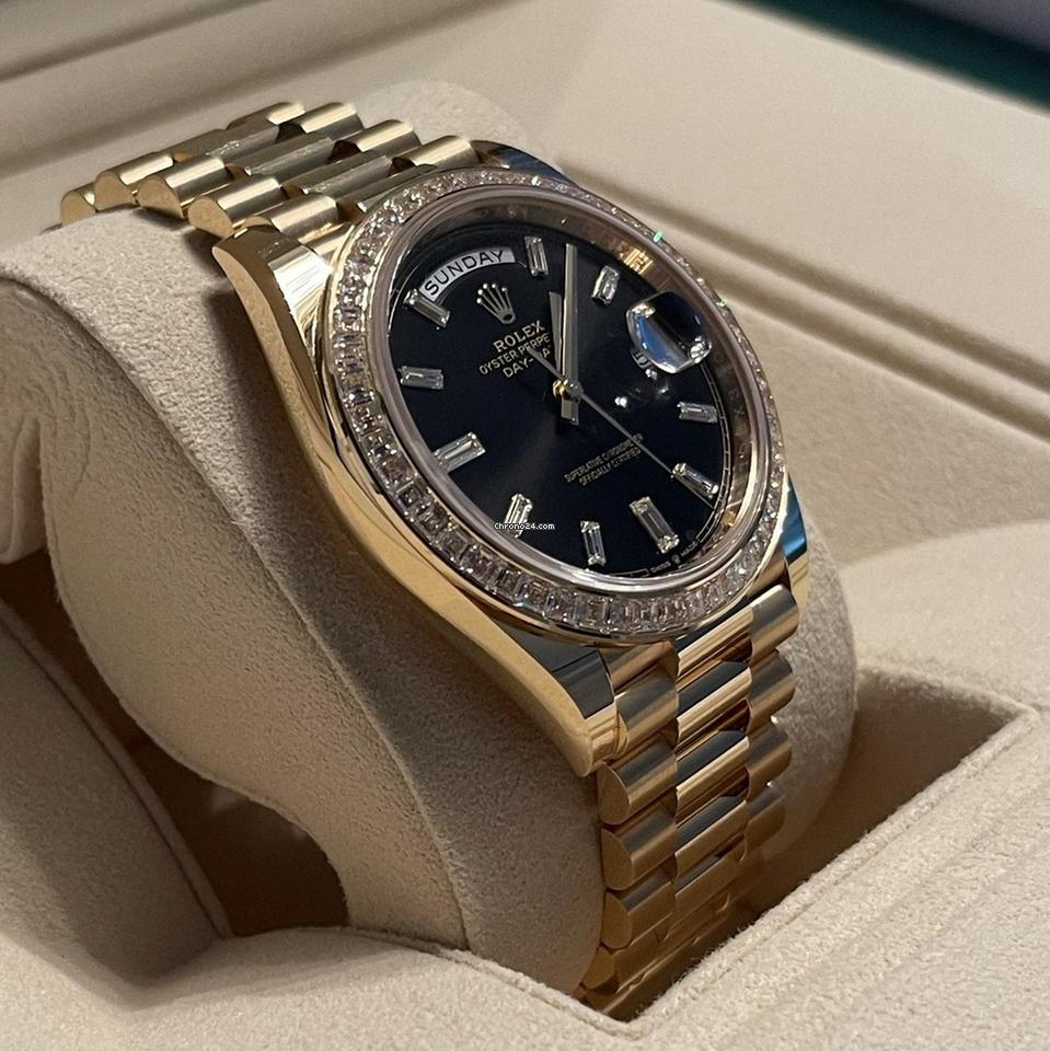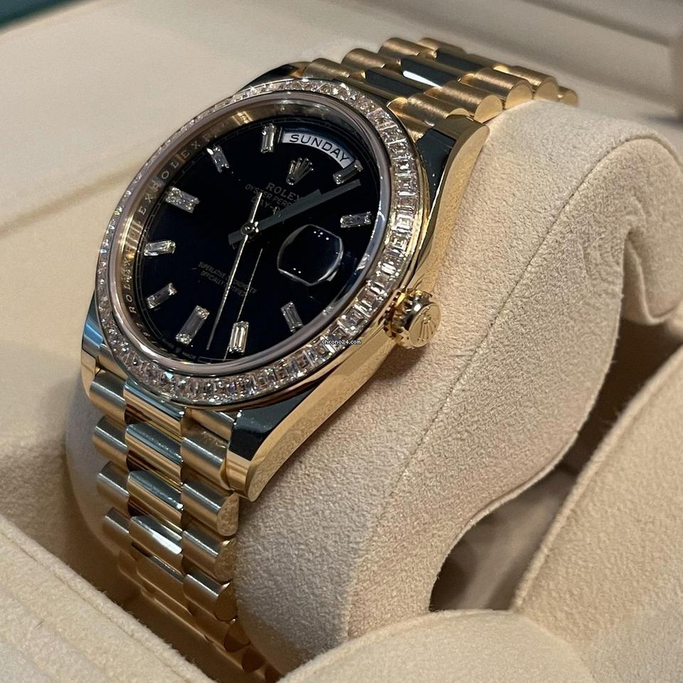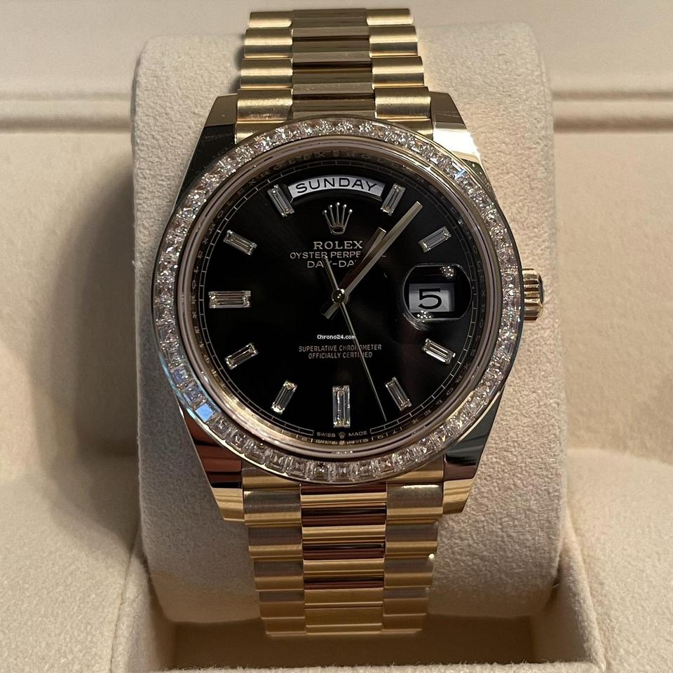 Rolex Day-Date 40 NEW 2023 Day-Date 40 BLACK BAGUETTE DIAL FACTORY TBR BEZEL 228398TBR