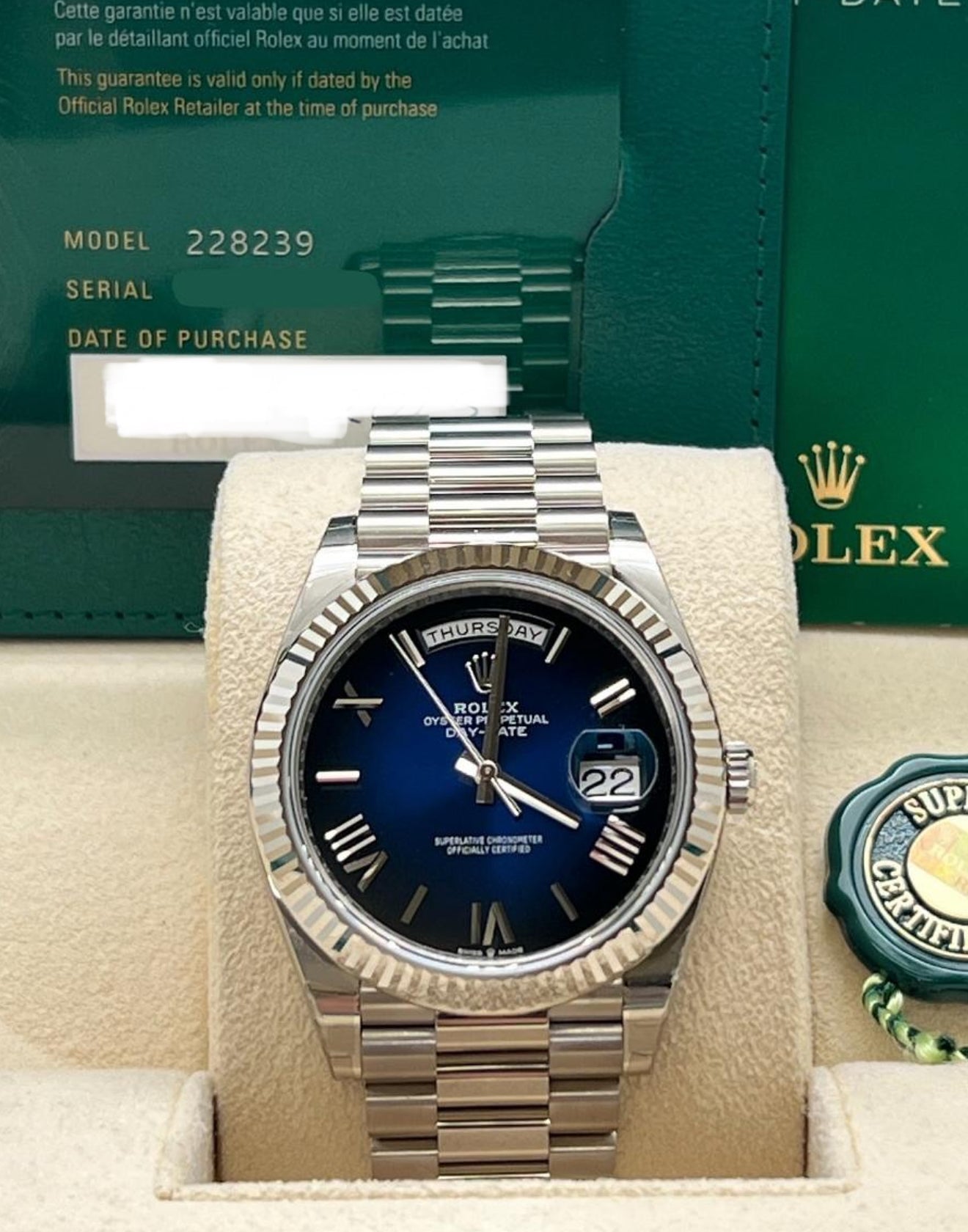 Rolex Day-Date 40 UNWORN 2025 BLUE OMBRÉ 228239 18KT WHITE GOLD