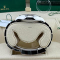 In stock ready to ship. 100% UNWORN and unworn with 2025 dated Rolex factory warranty card. Full set with all boxes, papers and documentation from Rolex. Unworn reference with open case back.