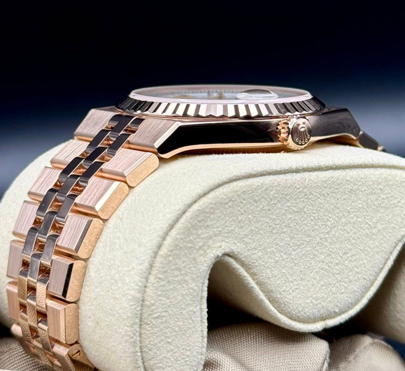 Rolex Land-Dweller 40 Everose Gold Intense White Honeycomb Motif Dial Fluted Bezel Flat Jubilee Bracelet 127335 - 2025