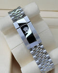 41mm 904L stainless steel case, screw-down steel back, screw-down crown with twinlock double waterproofness system, smooth bezel, scratch-resistant double anti-reflective sapphire crystal with cyclops lens over the date, blue dial, index hour markers, Rolex calibre 3235 perpetual self-winding movement with date at 3 o'clock that changes instantaneously at midnight in a few thousandths of a second, approximately 70 hours of power reserve, 904L steel Jubilee bracelet with five-piece links, folding Oysterclasp buckle with Easylink 5mm comfort extension link. Waterproof to 100 meters.