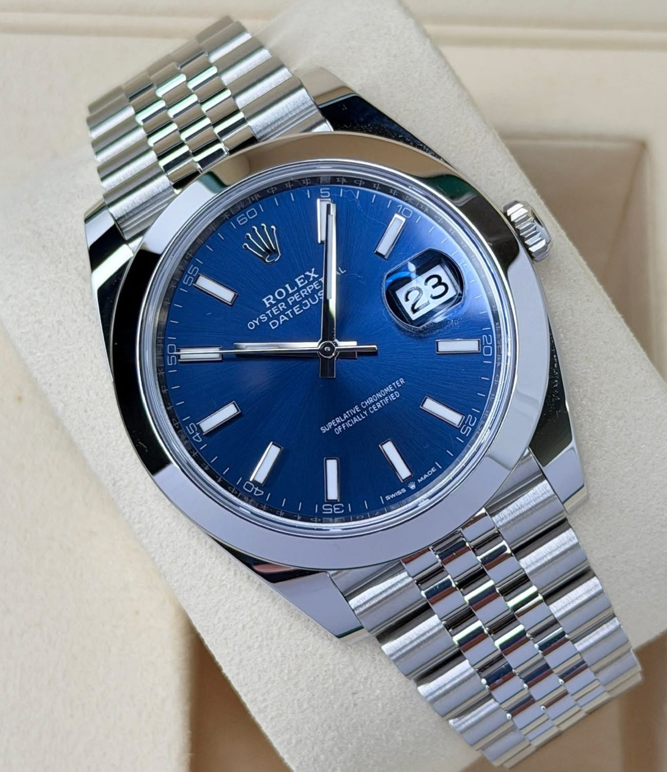 Rolex UNWORN 2025 Datejust 41 Watch - Smooth Bezel - Blue Index Dial - Jubilee Bracelet - 126300