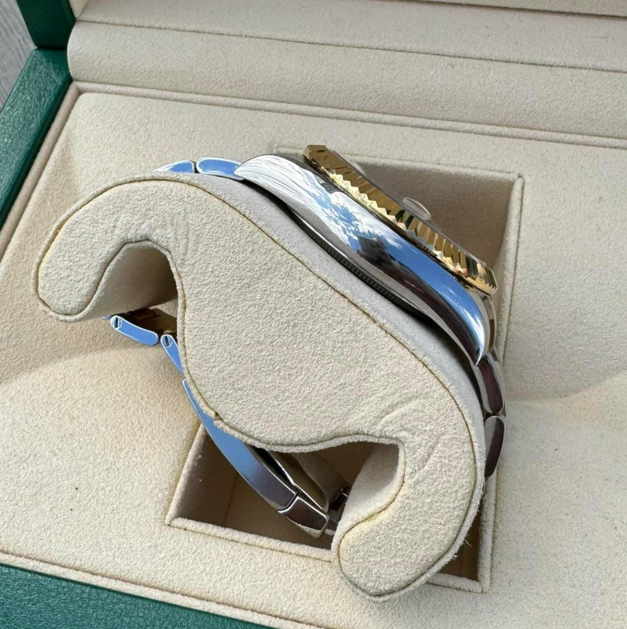 42mm yellow Rolesor case comprised of a 904L steel monobloc middle case, screw-down back, screw-down crown, 18K yellow gold fluted bezel with bidirectional rotatable Rolex Ring Command, scratch-resistant sapphire crystal with cyclops lens over the date and double anti-reflective coating, black dial, index hour markers, Rolex calibre 9001 automatic movement , second time-zone displayed via off-center rotating disc, Saros annual calendar with date at 3 o'clock and month indicated in discrete apertures at each of the 12 hour marks, stainless steel and 18K yellow gold Oyster bracelet, folding Oysterclasp buckle with Easylink 5mm comfort extension link. Waterproof to 100 meters.