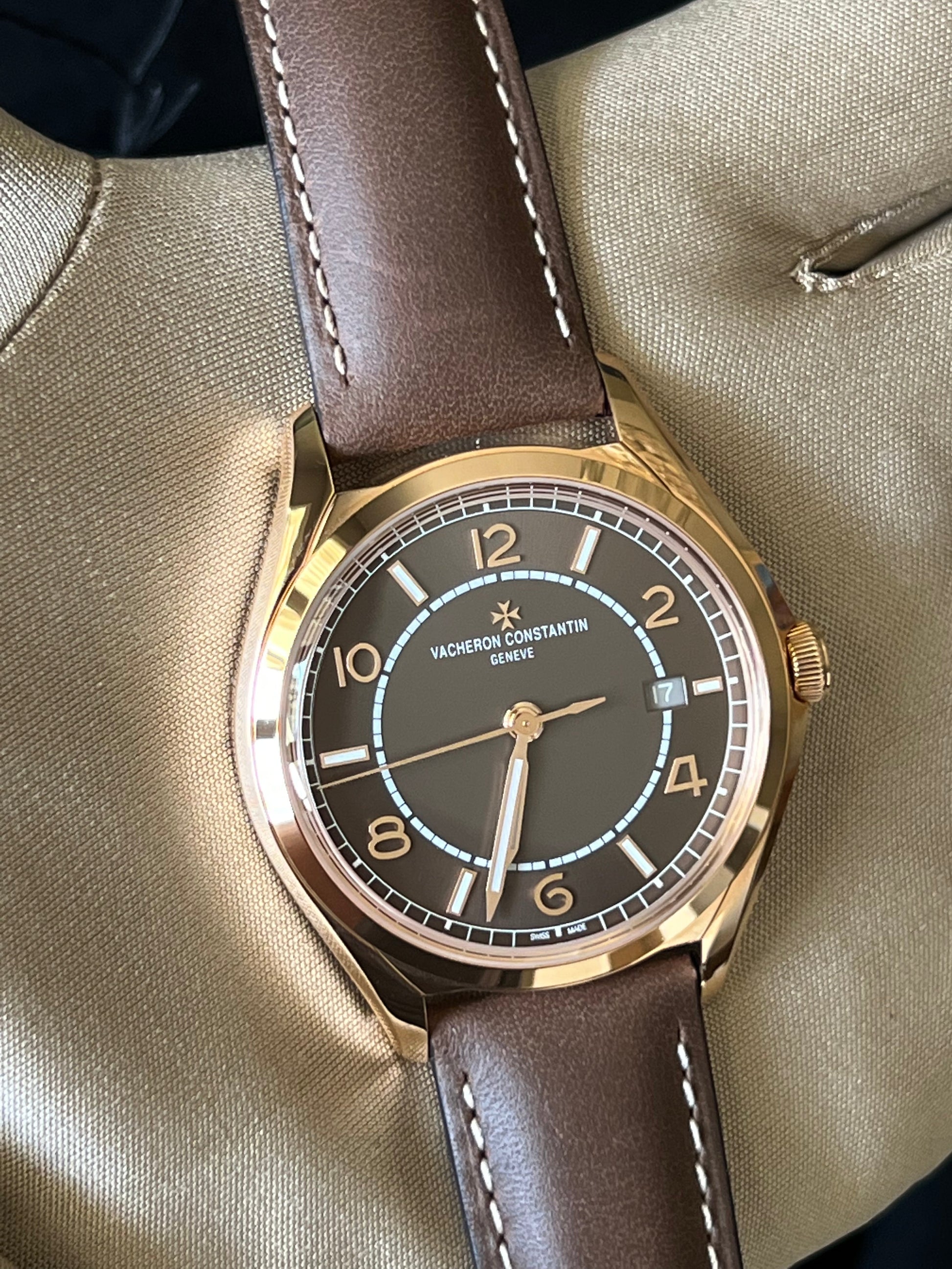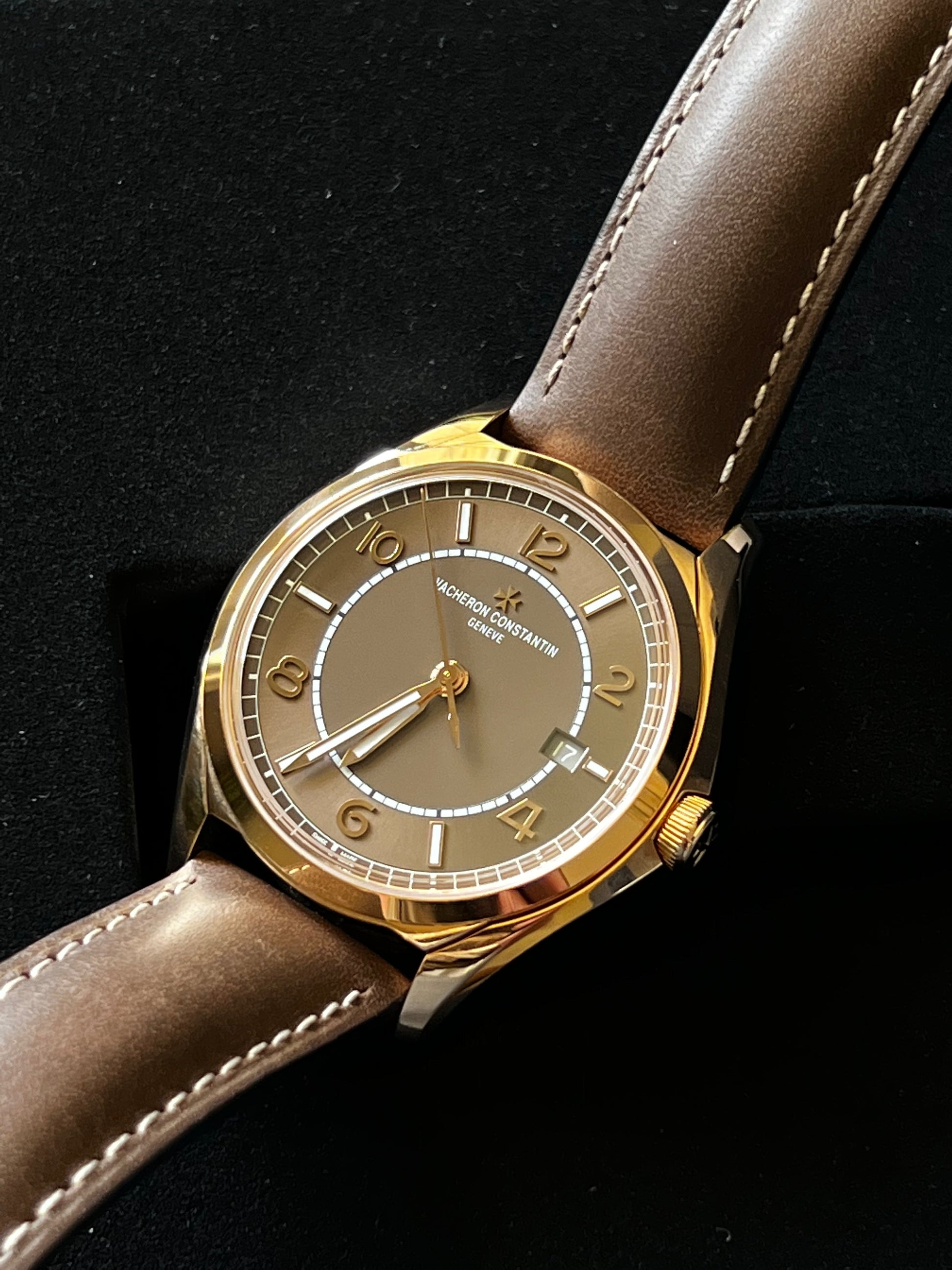 Unworn Vacheron Constantin Fiftysix Self-Winding 4600E/000R-B576, 40 mm. The watch has Brown Dial. The Case is Pink gold, Caliber # 1326 w/ 25 Jewels, 48 hours power reserve. The Calf strap with Ardillon buckle. The Water-resistant is up to 30 m. The Watch comes complete with Vacheron Constantin Papers & Box. Covered with Vacheron Constantin 2-Year Warranty.